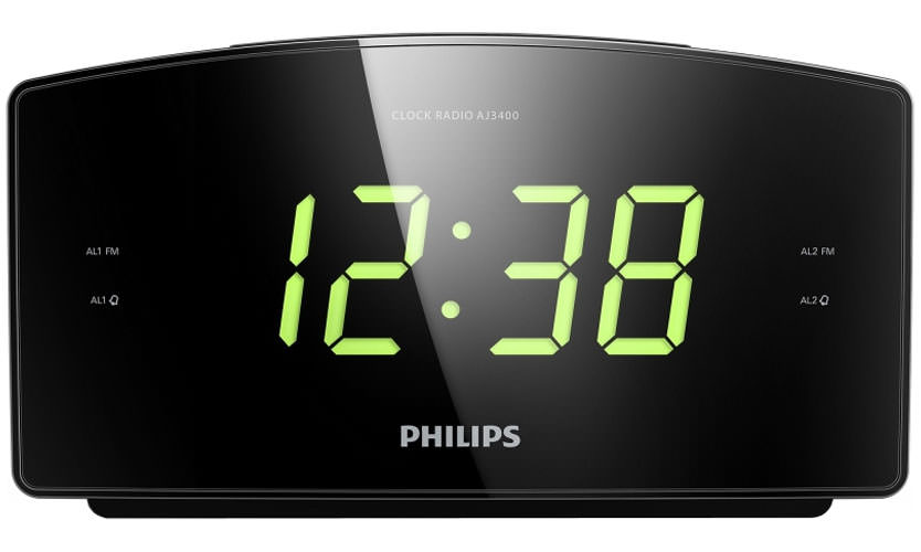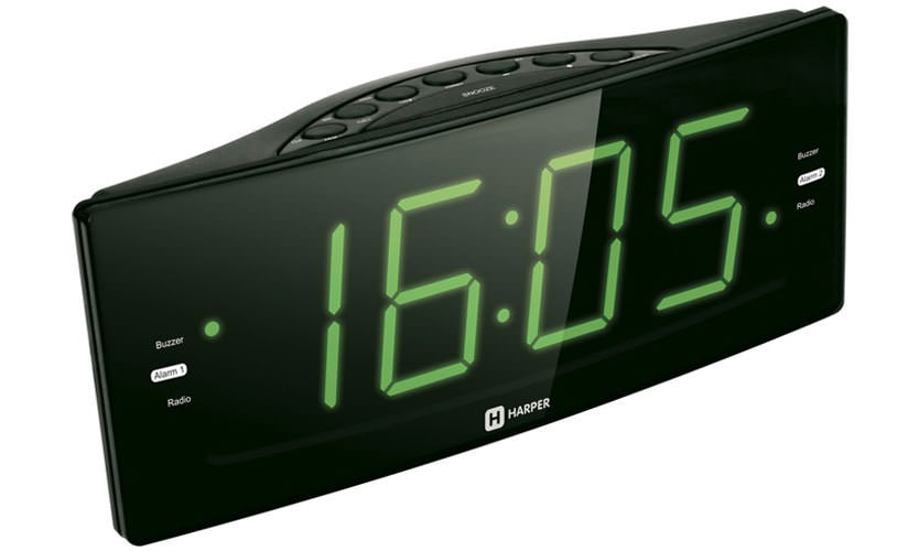 Radio-réveil pour ceux "qui ne peuvent pas être réveillés avec une arme à feu". Volume de signal élevé, répété pendant une heure. Vous pouvez définir 2 alarmes à la fois. Il accepte deux types de radiofréquences, comme le Philips AJ 3400. Les utilisateurs ont remarqué que la transmission du son n'était pas de très haute qualité en raison de la faible puissance de sortie des haut-parleurs de 0,5 W, et non de 2, comme dans le HARPER HRCB-7750.