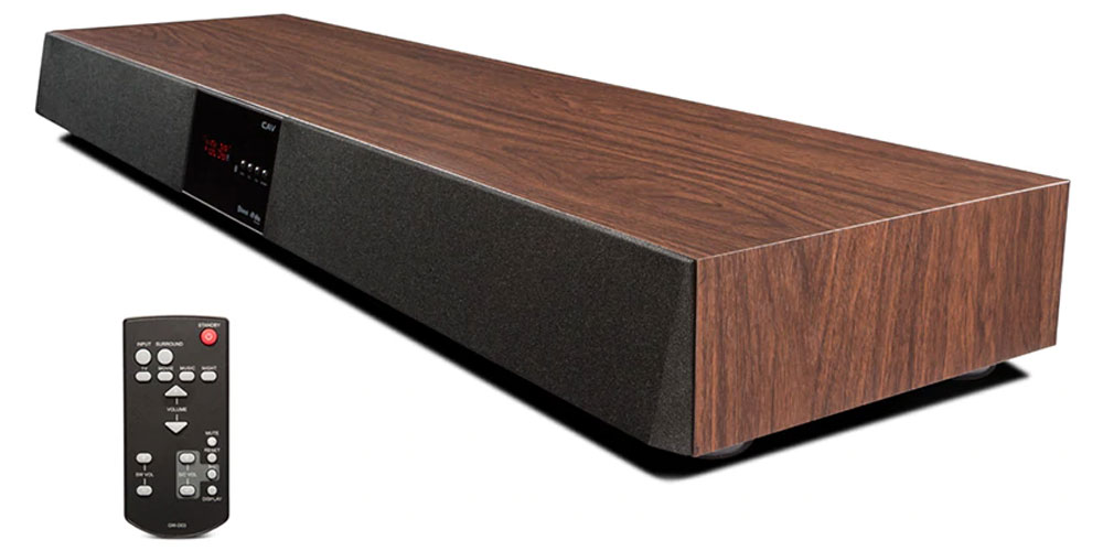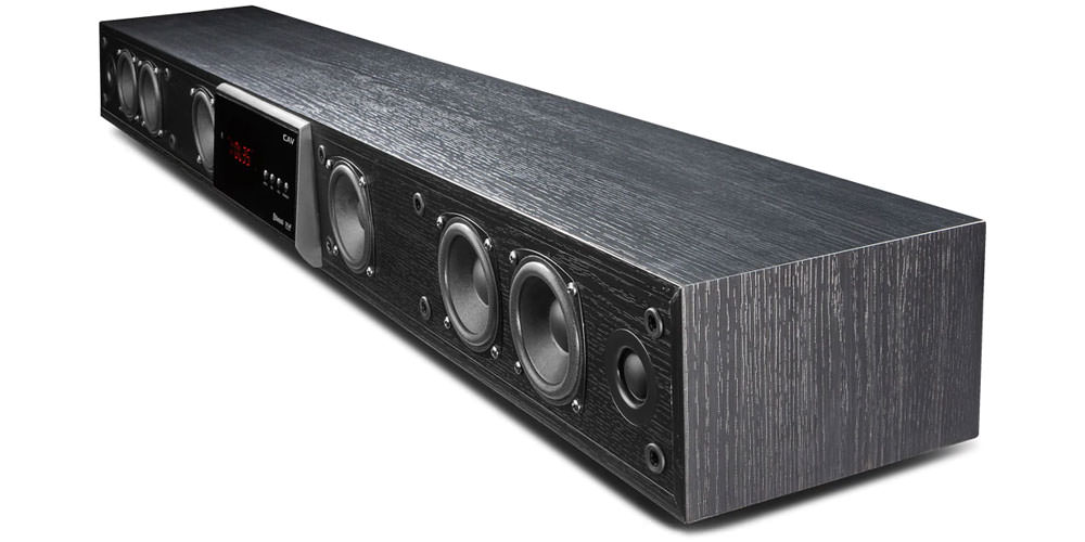 Une autre barre de son haut de gamme de la marque CAV complète le classement. Fait de bois dans un style rétro, il a fière allure. Sonne encore mieux. Equipé de 6 haut-parleurs et 2 subwoofers. La puissance totale est de 150 watts. La technologie de son surround SRS est prise en charge. Il y a un écran, contrôlé à partir de la télécommande. Possède des entrées optiques et coaxiales, RCA. Fonctionne également via Bluetooth. Installation - sol / mur. Prix - 18700 roubles.
