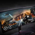 Moniteur avec matrice IPS 21: 9 avec G-Sync fournit une image sans déchirures ni retards, peut être overclocké jusqu'à 166 Hz (selon la carte vidéo). L'écran est incurvé. Support ergonomique - le moniteur peut être incliné et sa hauteur ajustée. Le rapport hauteur / largeur 21: 9 vous permet de voir les zones qui n'étaient pas visibles sur les moniteurs avec un rapport hauteur / largeur 16: 9.