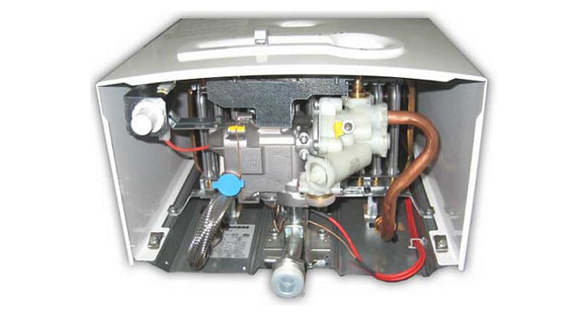 - la présence d'un échangeur de chaleur en cuivre à paroi épaisse;