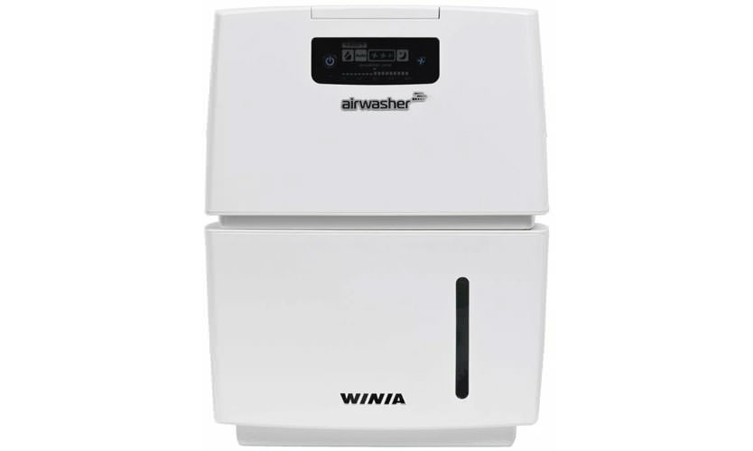 Excellent purificateur automatisé moderne, humidificateur, ioniseur. Économique en termes de consommation d'énergie, ne laisse pas de dépôts de sel sur les surfaces comme les humidificateurs conventionnels. Design élégant et beau. Réglage automatique des paramètres. Un petit volume du réservoir peut être un problème: les utilisateurs écrivent qu'ils doivent le remplir 3 fois par jour. Modèles à grand volume d'eau - Winia AWX-70 (9 l) et Boneco W1355A (7 l).