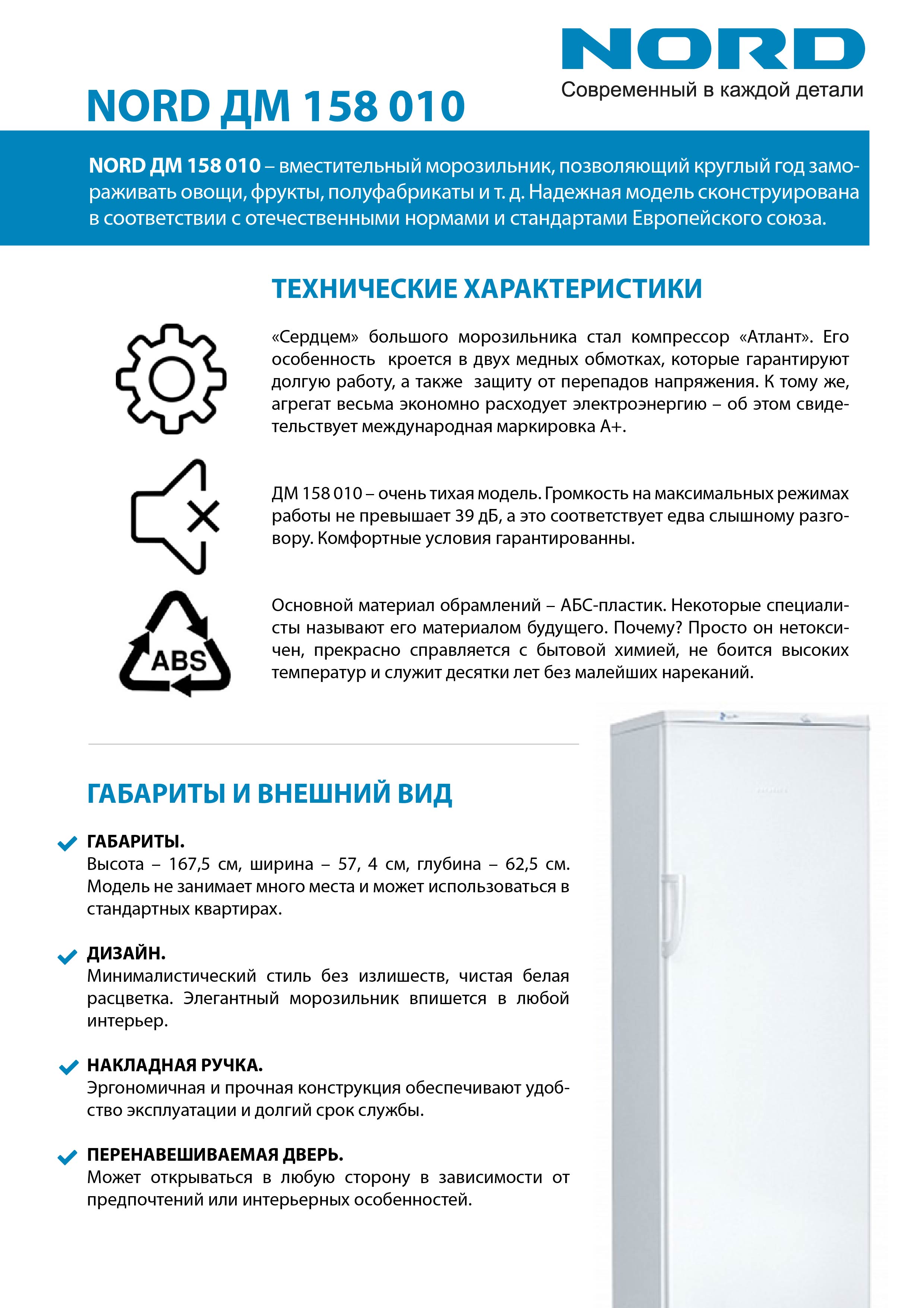 Nous portons à votre attention un aperçu de l'un des meilleurs congélateurs NORD DM 158 010.