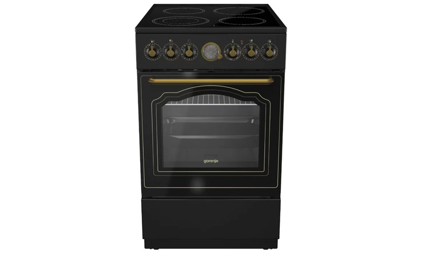 Poêle électrique au design élégant en noir (50x59,4x85 cm) avec surface vitrocéramique. Il y a quatre brûleurs électriques, l'un d'eux est à double circuit. Four d'une capacité de 70 litres avec grill. Commutateurs pour fonctionnement standard. Équipé d'une minuterie sonore. Il y a une horloge. Un indicateur de chaleur résiduelle est fourni. Caractéristiques d'efficacité énergétique comme modèle ci-dessus. Puissance 8,7 kW.
