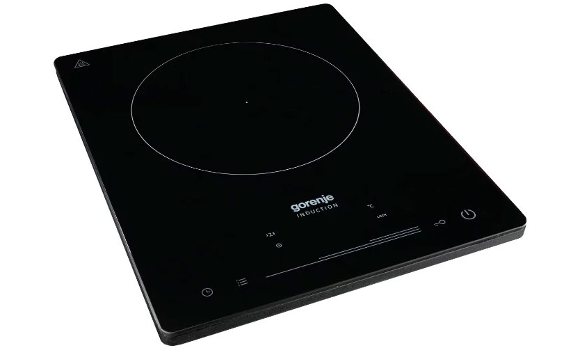 Petite assiette noire (27x34x4 cm) sans four. Couvercle en vitrocéramique, une plaque à induction. Interrupteurs tactiles. Il y a un tableau de bord sur le corps. A une minuterie. Un arrêt de protection est fourni. Les boutons sont verrouillés contre toute commutation accidentelle. Puissance 2 kW.