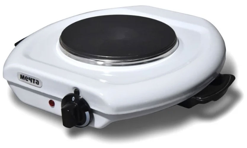 Plaque de cuisson simple sans four. Opéré par des mécaniciens - bouton rotatif. Puissance 1000 W. Matériau de revêtement - émail blanc.