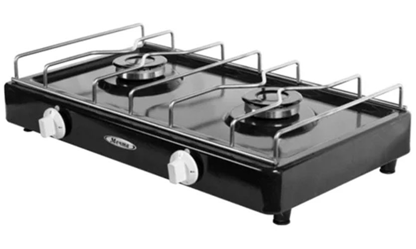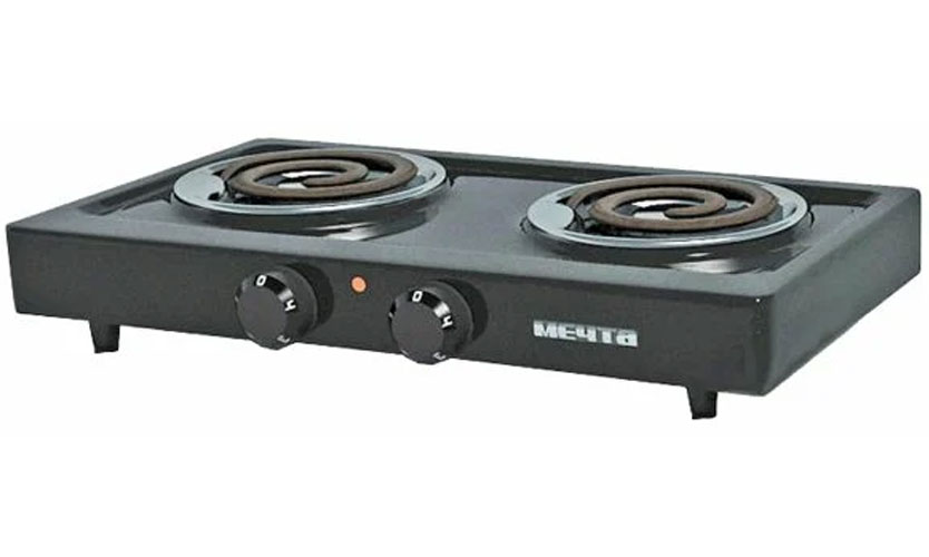 Plaque de cuisson à deux feux sans four. Revêtement - émail noir.Commande mécanique avec poignées rotatives. Le modèle a une note élevée des acheteurs. Le fabricant propose un modèle similaire pour un brûleur - 100M avec un coût de 1200 roubles.