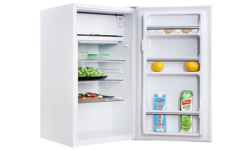 Il s'agit d'un simple échantillon de plastique et de métal blanc économique de petites dimensions (48 × 60,5 × 86,5 cm). Réfrigérateur à un compartiment d'un volume de seulement 88 litres avec un petit compartiment congélateur (27 litres), séparé par sa propre porte. Dans celui-ci, la température n'atteint que -12 ° C, il n'est donc pas nécessaire d'attendre une congélation de haute qualité des aliments. Par conséquent, ce modèle est choisi pour une résidence d'été, une auberge, un mini-hôtel, etc. Le réfrigérateur a deux étagères en verre et un tiroir en bas. La porte peut être re-suspendue de l'autre côté, comme avec les autres modèles. La poignée intégrée facilite l'ouverture. Le compresseur en est un, ce qui est typique de tous les réfrigérateurs de cette section. Le congélateur est dégivré manuellement et le réfrigérateur est dégivré par la méthode goutte à goutte. La température de refroidissement peut être réglée à l'aide du commutateur rotatif. Le réfrigérateur est assez économique (classe d'efficacité - A), consomme 161 kWh par an. Le principal avantage est le faible niveau sonore (40 dB).