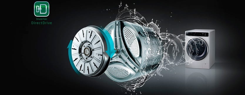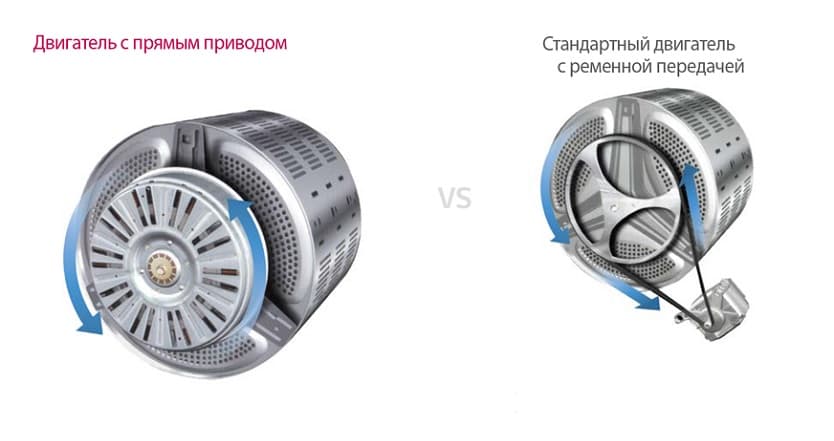 - Du fait que le moteur à entraînement direct dans la "laveuse" est situé directement derrière le tambour, et non en dessous ou sur le côté, de telles machines peuvent avoir de grandes dimensions.