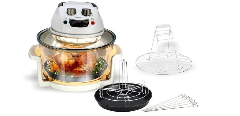 Le four à convection est une version mise à jour et modernisée du four à convection électrique. Cela ressemble à un récipient en verre d'un volume de 8 à 20 litres, placé sur un support en plastique. Il y a un élément chauffant intégré à l'intérieur de cette structure. Un couvercle avec un ventilateur est placé sur le dessus. Cet appareil est assez encombrant, ce qui le rend peu pratique pour le placement et l'utilisation dans les petites cuisines.