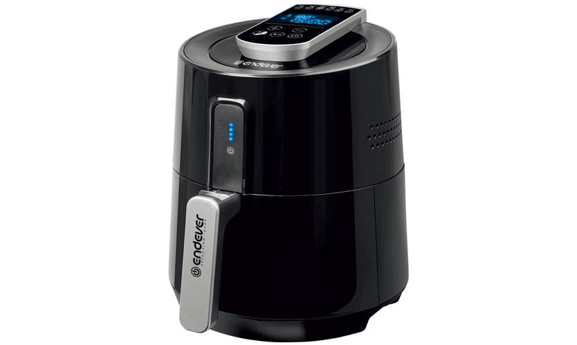 Friteuse à air électrique Endever d'une puissance de 1500 W, une capacité de cuisson d'un volume de 2,6 litres. 6 programmes automatiques, la température maximale de chauffage est de 200 degrés. Grâce à la circulation d'air spéciale à l'intérieur de l'appareil, le plat est obtenu avec une belle croûte à l'extérieur et une douce et juteuse à l'intérieur. Le modèle est équipé d'un panneau de commande tactile, d'une minuterie jusqu'à 30 minutes, d'un contrôle de la température de cuisson, d'un indicateur de fonctionnement, de pieds caoutchoutés et d'une poignée non chauffante.