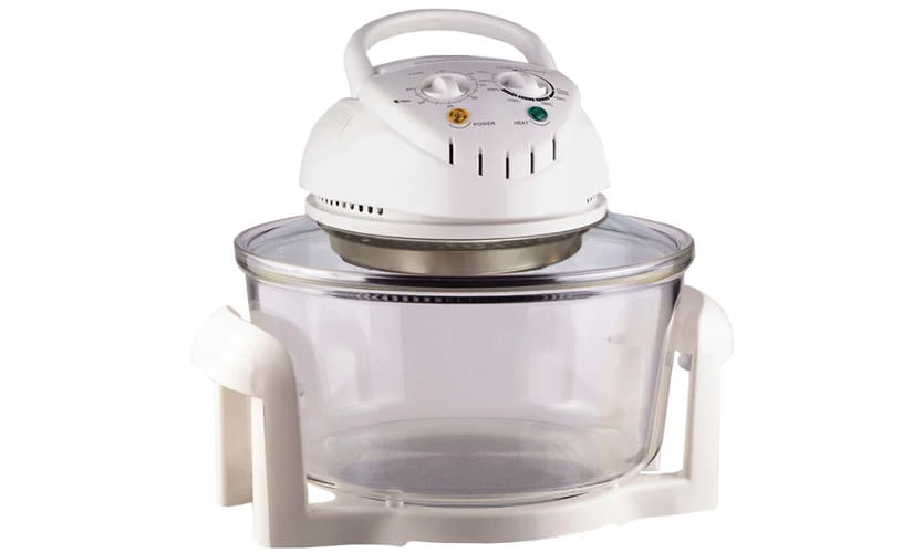 Notre classement est ouvert par le modèle du fabricant russe DELTA, fabriqué en blanc, d'une puissance de 1400 W et d'un bol de cuisson d'un volume de 12 litres (il peut être étendu à 17 litres) en verre résistant à la chaleur de haute qualité. La technologie de chauffage par convection est mise en œuvre dans l'airfryer - traitement thermique des produits avec un courant d'air chaud. La température maximale de chauffage est de 250 degrés. L'appareil est équipé d'indicateurs lumineux de fonctionnement et de chauffage, d'une minuterie rotative pendant 60 minutes. Parmi les fonctions figurent le maintien automatique de la température, le mode autonettoyant, l'arrêt automatique lorsque la poignée est soulevée, le blocage d'une activation accidentelle, la température de cuisson réglable. L'ensemble comprend des grilles hautes et basses, des pinces pour leur extraction.