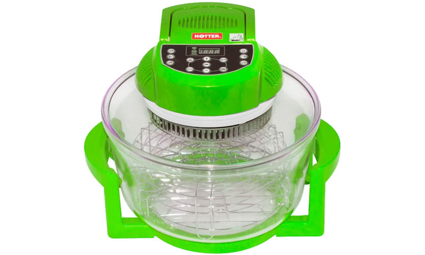 L'airfryer économique et fonctionnel avec commande électronique de la société américaine Hotter a une puissance standard de 1400 W et un volume de 10 litres, qui peut être augmenté à 14 litres, contrairement au FIRST AUSTRIA FA-5030-1 ou au CENTEK CT-1456 (jusqu'à 17 litres). 6 programmes de cuisson automatiques, une minuterie avec limiteur jusqu'à 3 heures, un démarrage différé, des fonctions de maintien au chaud, d'auto-nettoyage, de contrôle de la température jusqu'à 250 degrés, un grand kit de livraison, qui comprend: un anneau d'agrandissement, 3 grilles (inférieure, moyenne, supérieure), plaque de cuisson en filet , 4 brochettes, pinces, rôtissoire de volaille, support de couvercle.