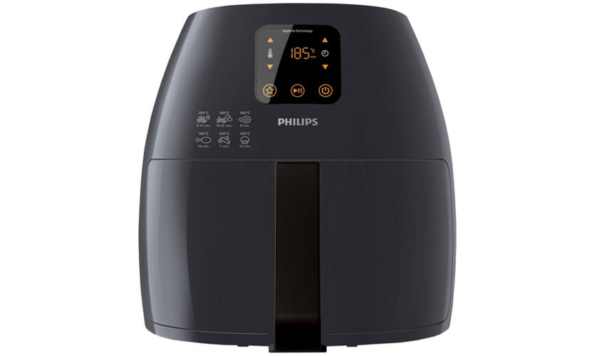 La première place du classement est occupée par un modèle de Philips d'une puissance de 2100 W et d'une petite capacité de 1,6 litre. 6 programmes de cuisson automatiques à une température maximale de 200 degrés, minuterie jusqu'à 60 minutes, mode pause. L'appareil dispose de la technologie brevetée Rapid Air de Philips: vous pouvez faire frire les aliments à l'air chaud, de sorte que les aliments soient croustillants à l'extérieur et tendres à l'intérieur. La conception unique de l'Airfryer de Philips, la construction spéciale vous permet de cuire vos aliments préférés encore plus rapidement. À l'aide d'un écran tactile numérique, vous pouvez régler l'heure et la température de cuisson. Il y a un bouton pour enregistrer la recette des plats que vous aimez. Le récipient intérieur a un revêtement antiadhésif de haute qualité qui peut être facilement lavé à la main ou au lave-vaisselle. Parmi les «puces» utiles du modèle, il y a des pattes antidérapantes, un corps thermiquement isolé, un livre avec des recettes.