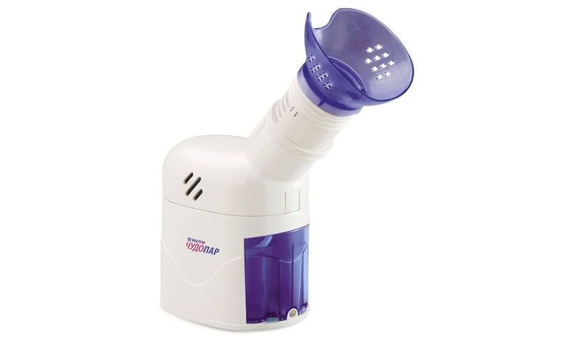 Inhalateur à vapeur de 185x225x225 mm. Propulsé par un réseau. Poids 1200 g. Prix: 1 470 roubles.