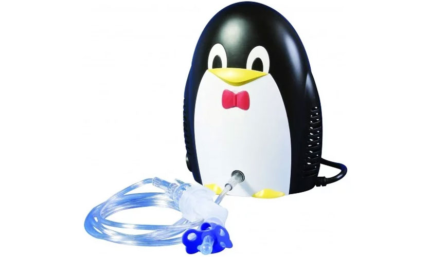 Nébuliseur en forme de pingouin jouet, mesurant 125x188x180 mm avec un récipient de 7 ml. Débit d'air 8 l / m.La taille des particules peut être réglée dans la plage: 1 à 10 microns. Leur vitesse d'expansion est de 0,2 ml par minute. Equipé de masques et d'accessoires pour la bouche et le nez de taille universelle et pour l'enfant. Il est allumé à partir de 220 V. Il exécute la fonction principale en 30 minutes. Bruit 54 dB. Poids 1,5 kg. Prix: 2863 roubles.