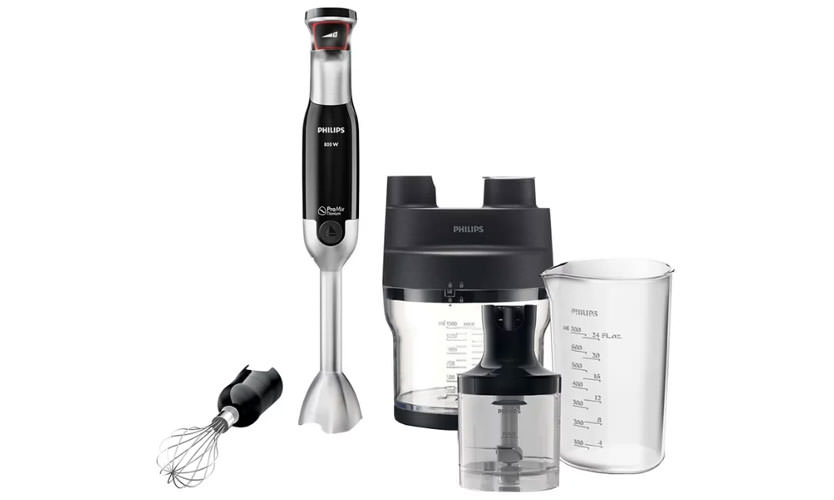 Mélangeur à plusieurs vitesses du fabricant néerlandais Philips avec la technologie Philips ProMix, qui garantit une cohérence uniforme des produits. Puissance - 800 W. Le volume du bol principal est de 1,5 l et la capacité de broyage est de 300 ml. La vitesse est sélectionnée par simple pression sur un bouton, qui dépend de la pression. Le bouton est à l'extérieur du modèle. Il a une poignée caoutchoutée ergonomique. La longueur du cordon d'alimentation est de 1,2 m et le prix est de 10 360 roubles.