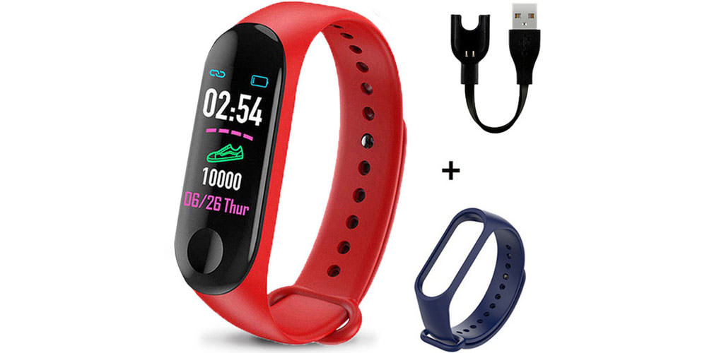 Bracelet fitness spécial avec cardiofréquencemètre, tonomètre, Bluetooth. Un analogue complet visuellement et fonctionnellement Xiaomi Mi Band 3. Prix - 325 roubles.