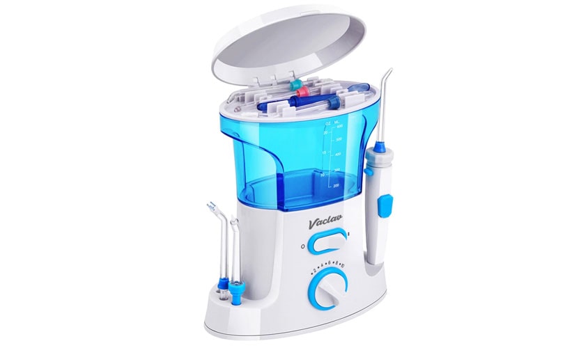 Le prix est de 2400 roubles. Délivre un jet pulsé sous pression. 7 accessoires: un pour la langue, les poches de gencives, l'orthodontie, le dissolvant de plaque, 3 classiques. Volume du réservoir 1000 ml. Sur le corps, il y a une poche spéciale pour ranger tous les composants. La vitesse de fonctionnement peut être commutée dans une plage de 10 réglages. Fournit une pression de 30-110 PSI.