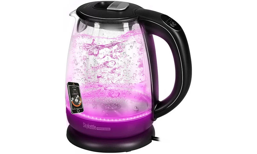 Une bouilloire électrique de 21,8x22,4x15,8 cm, d'une capacité de 1,7 litre. Le couvercle, la poignée et la base sont en plastique noir, l'ampoule est en verre. Fournit 5 positions de température - 40–100 °. Après avoir installé l'application, vous pouvez la contrôler à distance depuis votre smartphone. Fonctionne dans la "Smart House". Le couvercle est verrouillé pendant le fonctionnement. Vide ne s'allume pas. Au moment où le chauffage démarre, le rétroéclairage s'allume, dont la couleur et la luminosité peuvent être réglées à partir du téléphone. Il s'éteint tout seul lorsqu'il est retiré du support. Possède un indicateur de niveau d'eau. Poids - 1 kg. Puissance - 2200 W. La longueur du cordon d'alimentation est de 0,7 m, un compartiment est prévu pour cela. Prix - 2370 roubles.