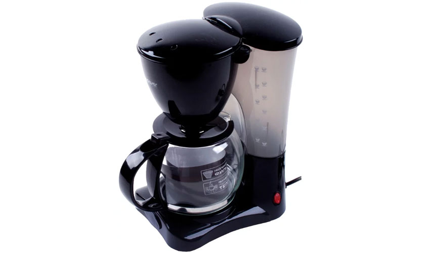 Cafetière goutte à goutte pour 1500 roubles. Fonctionne avec du café moulu. Une caractéristique des cafetières goutte à goutte est que le condensat chaud passe à travers le filtre avec du café et s'accumule dans un récipient, ce qui vous permet de préparer un riche "Americano". La puissance de l'appareil est de 900 W. Volume de la chambre 1,2 l. La structure n'est pas équipée d'un manomètre, d'une minuterie, d'un affichage et d'un détartrage en mode automatique. Il y a un filtre permanent et un anti-goutte. La machine à café ne fournit pas d'eau chaude. Il y a une plaque chauffante automatique. Il n'y a pas de bac collecteur. Le corps est en plastique. Il contient un indicateur d'inclusion et de quantité d'eau. Livré avec une cuillère doseuse.