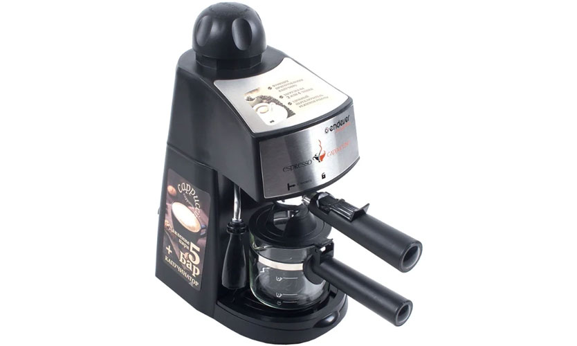 La prochaine cafetière à caroube du fabricant a un coût moyen de 6000 roubles et un certain nombre de différences par rapport à la précédente. Il complète la revue de notation des machines à café ENDEVER. La machine ne prépare qu'une seule tasse de café à la fois. Utilise des matières premières moulues. Corne en métal. La puissance de la cafetière est de 1000 W, la pression est également plus élevée - 15 bar. Le volume est légèrement plus grand que le précédent - 500 ml.
