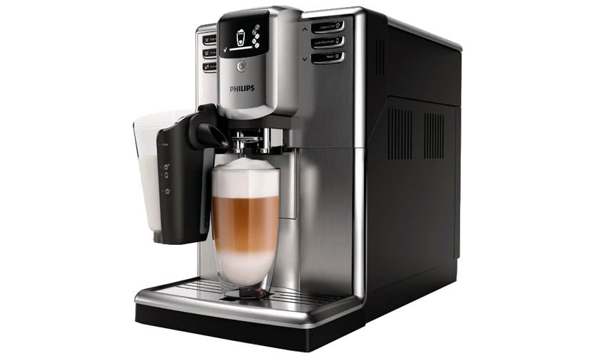 Prix - à partir de 54 500 roubles. Couleur du corps - argent ou noir. Vous pouvez ajouter des grains de café ou du café déjà moulu. Élément chauffant - chaudière. Puissance de travail - 1850 W. Peut contenir jusqu'à 1,8 litre d'eau. Fournit jusqu'à 15 bar de pression. La force, la température et la quantité de boisson distribuée sont réglables, et la quantité de lait distribuée est également régulée. Les grains sont pré-mouillés avant broyage.