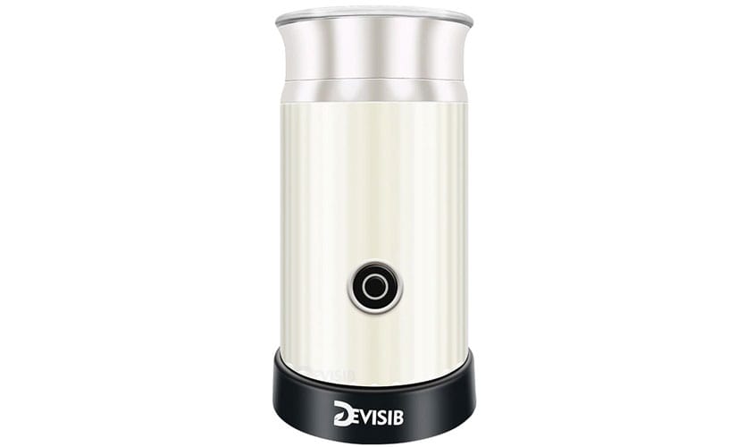 Mousseur à lait dense pour 250 ml de cappuccino. Fabriqué en acier inoxydable. Situé à la base. Pour faire de la mousse chaude, appuyez une fois sur le bouton d'alimentation (en même temps il s'allume en rouge), mousse froide - maintenez-le pendant 3 secondes (rétroéclairage bleu). À l'intérieur, il y a des marques du niveau maximum auquel vous devez verser du lait (le plus bas pour le froid). Compléter avec un fouet pour fouetter et remuer. Puissance 750 W. Prix: 4 155 roubles.