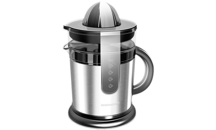 Boîtier en plastique, maille en acier inoxydable. Col rond, 55 mm. Indication de la quantité de jus. Éléments de support avec capuchons en caoutchouc. Il y a un compartiment pour le fil, sa longueur est de 80 cm Il y a une fonction de pré-nettoyage. La vitesse de travail n'en est qu'une.