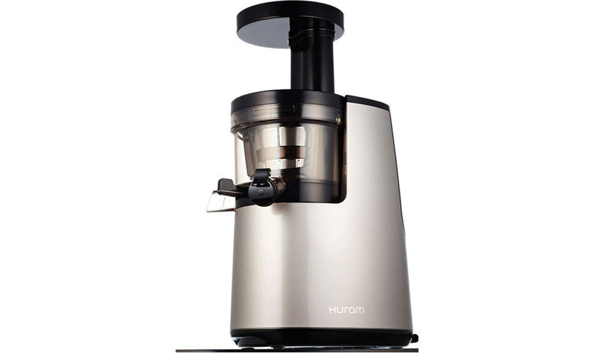 Presse-agrumes noir (30x28x18 cm). Corps en acier inoxydable. Les produits sont chargés à travers le trou rond supérieur de 8,5 cm de diamètre et 14 cm de hauteur, avec un couvercle à serrage manuel. Un filtre à mailles (acier inoxydable) avec cinq types de broyage élimine le jus. La vitesse est réglée manuellement avec les boutons correspondants. Equipé d'un écran affichant la température ambiante et le mode sélectionné: fruits rouges, agrumes, 2 types de pommes et aliments durs. Un bec avec un système anti-goutte (après l'avoir soulevé, le jus cesse de couler dans le verre). Conteneur à déchets en plastique 2 litres, pour jus - une cruche d'un volume de 1,5 litre. Productivité 12001-15000 tr / min. Cordon 1,2 m. Puissance 501 - 800 W. Poids 3,7 kg. Prix: à partir de 6130 roubles.