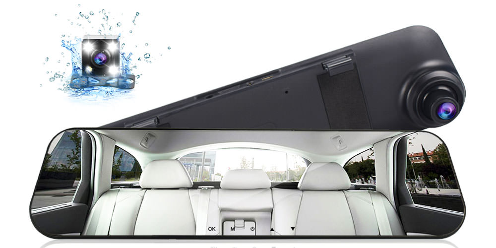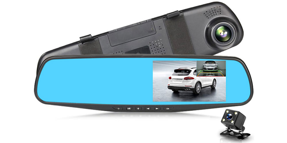 Un simple enregistreur sous la forme d'un miroir. L'écran de 4,3 pouces est situé sur le côté droit du rétroviseur, mais n'interfère pas avec la conduite. Résolution d'enregistrement - Full HD + HDR. L'angle de vue est de 140 degrés. De plus, vous pouvez acheter et installer une caméra de recul avec protection contre l'humidité à l'extérieur. L'enregistrement est effectué simultanément à partir de deux caméras. La caméra de recul est automatiquement activée lors du passage en marche arrière. En standard, le registraire est équipé d'un détecteur de mouvement, d'un capteur G, d'un moniteur de stationnement. Certes, il y a des problèmes d'autonomie. La batterie intégrée dure 5 à 10 minutes. Contrôle par boutons sous le miroir. D'autres appareils peuvent être connectés via USB. Prix - 1200 roubles.