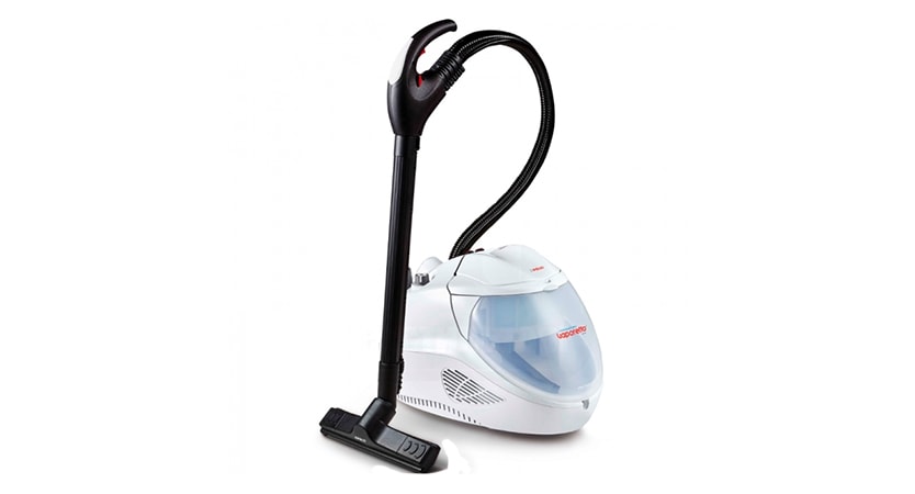Appareil multifonctionnel pour tous types de nettoyage et de désinfection. Il permet de collecter la poussière (1,8 L) et le liquide répandu en petites quantités (1,2 L), et est également capable de délivrer un jet de vapeur chaude et dense (1,1 L). Équipé d'un filtre HEPA-13, d'un régulateur de puissance sur la poignée et d'un tube d'aspiration télescopique. Un cordon de 6 m est en principe suffisant pour les pièces spacieuses; le prix du modèle comprend tous les accessoires les plus populaires et les plus utiles. Poids unitaire - 8,2 kg. Le réchauffement de la chaudière prend en moyenne 10 à 12 minutes et la consommation d'énergie est de 2,5 kWh. Il attire l'attention des consommateurs avec son apparence élégante et moderne, sa polyvalence et son étude approfondie. Permet des nettoyages rapides et un nettoyage général de haute qualité. Certes, le coût du modèle, comme tous les aspirateurs à vapeur, est assez élevé - à partir de 25000 roubles.