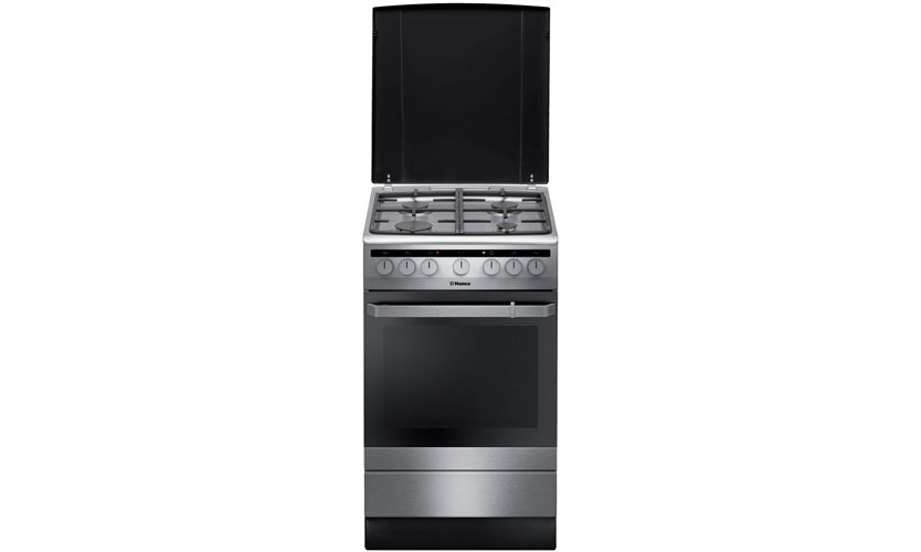 Poêle couleur argent 50x60x85 cm Armoire lumineuse 65 litres. Il y a la convection et le gril (broche incluse). Plaque de cuisson en acier inoxydable. Équipé de quatre brûleurs à gaz (un chauffage rapide). Ils sont allumés avec un allumage électrique. Le contrôle est effectué par des commutateurs rotatifs. Équipé d'une minuterie sonore. Grilles en fonte incluses. Prix: 18 975 roubles.