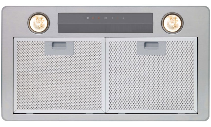 Contrôlé par l'électronique, commutateurs tactiles. Intensité de travail 740 m3 / h, 3 modes de vitesse. Il y a une minuterie. Absorption périmétrale. Éclairage halogène. L'ensemble comprend un filtre pour collecter les graisses, un indicateur de sa pollution, un clapet anti-retour. Niveau sonore pas plus de 51 dB.