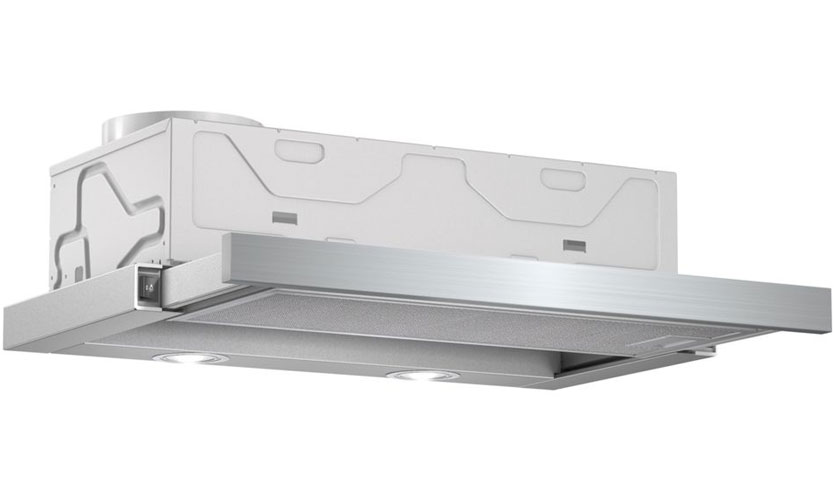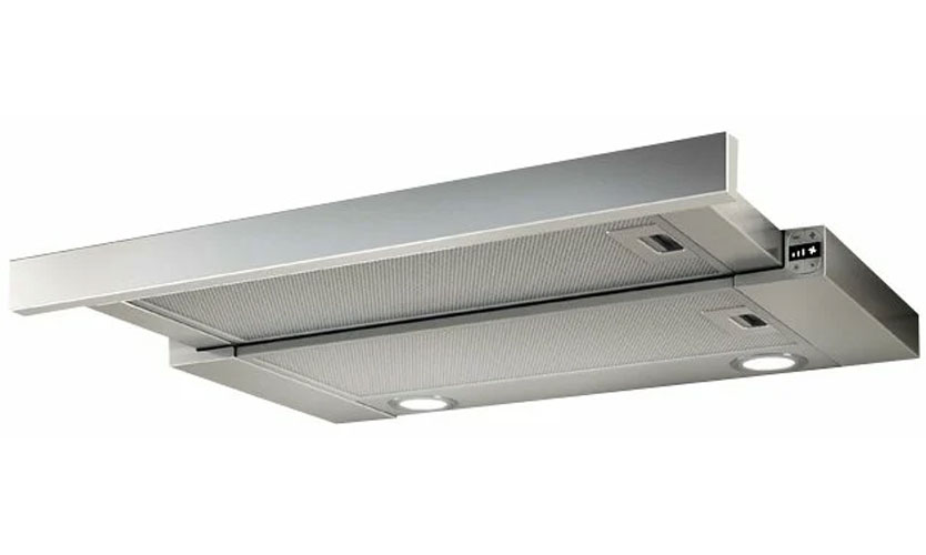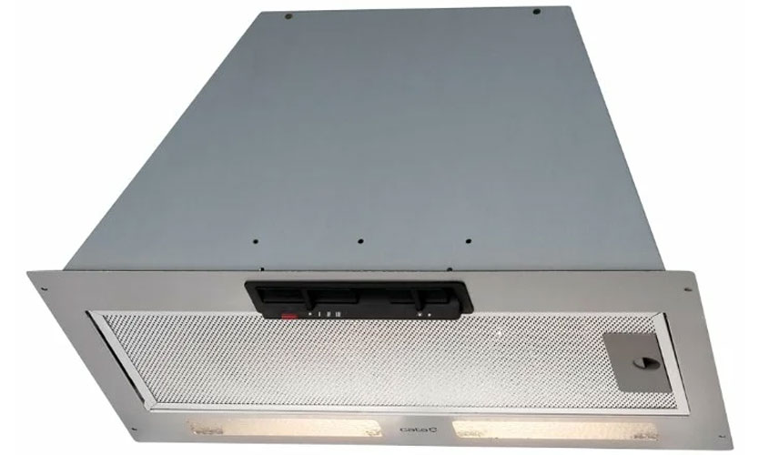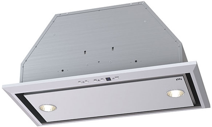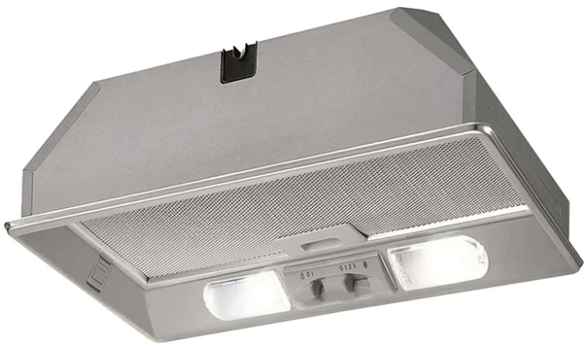 Modèle entièrement encastré (16x50x29,6 cm) de couleur argent. Trois modes de vitesse sont commutés avec un curseur. Productivité 850 mètres cubes m / h. Illuminé par deux halogènes de 20 W. Puissance 190 W. Bruit 56 dB. Il a une valve qui ne laisse pas l'air entrer dans la cuisine de l'extérieur. Prix: 7 790 roubles.