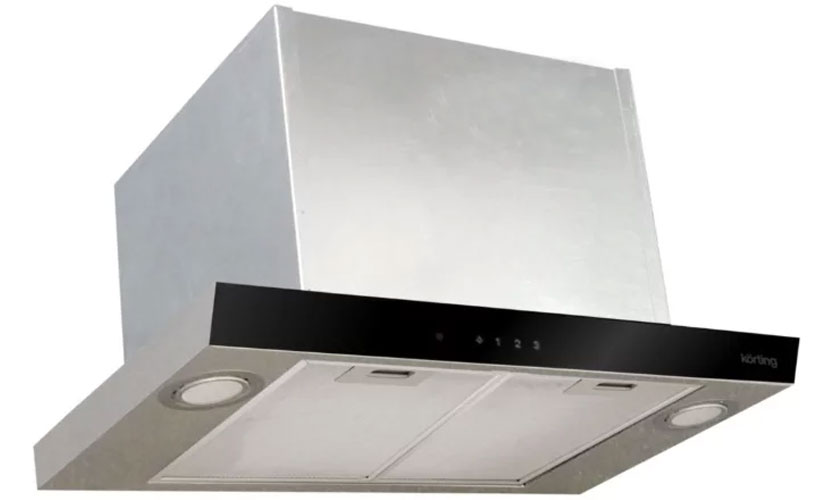 Un capot argenté de 13,5x60x28 cm fournit une partie d'extension du panneau (augmentant la zone de sortie d'air). Fonctionne à deux vitesses, commutateurs avec des boutons. La productivité est de 600 mètres cubes. m / h. Illuminé par deux halogènes de 28 W. Equipé de deux moteurs fournissant 95W de puissance. Bruit à partir de 44 dB. Prix: 6 690 roubles.