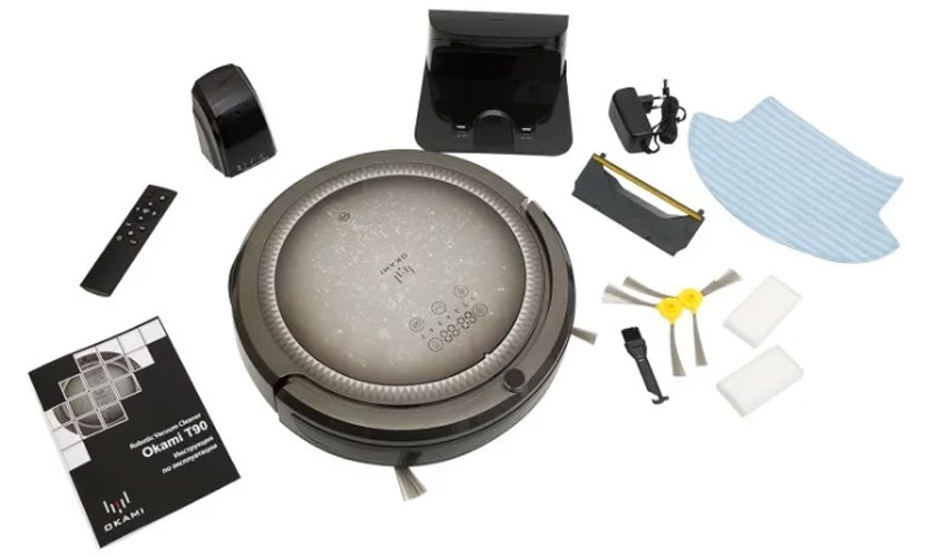 L'aspirateur Okami T90 peut aspirer n'importe quelle surface, ainsi qu'essuyer le sol avec un chiffon humide. Il a les spécifications suivantes: