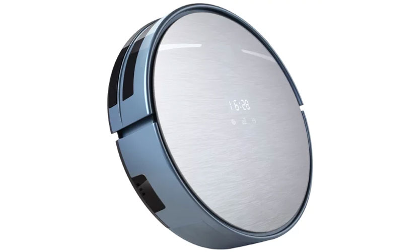 L'aspirateur a une forme ronde familière avec un diamètre de 32 cm et une hauteur de 8,8 cm et pèse 3 kg. Le corps est en plastique et la partie supérieure est en verre durable. Il contient des boutons de commande tactiles et un écran LED qui affiche l'état de l'appareil au moment actuel et montre l'heure.