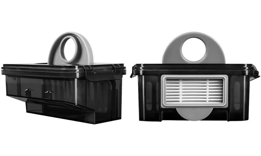 L'aspirateur RV-R300 collecte la poussière, les débris et la laine sur des surfaces lisses, les envoyant au dépoussiéreur, qui est équipé d'un filtre fin de classe H13 et d'un filtre HEPA. L'appareil dispose de quatre modes: