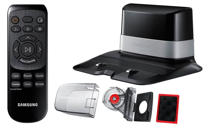 Pour le contrôle, des boutons sur le corps, une télécommande ou une application sur un smartphone sont utilisés. Le robot se connecte au Wi-Fi via l'application SmartThings - compatible avec Android et iOS. Cette application est commune pour contrôler tous les appareils intelligents Samsung. Interface russifiée pratique et compréhensible.