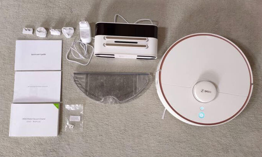 Le robot aspirateur 360 S7 est livré dans une grande boîte en carton. Tous les articles sont emballés séparément pour réduire le risque de dommages pendant le transport. Emballage inclus: