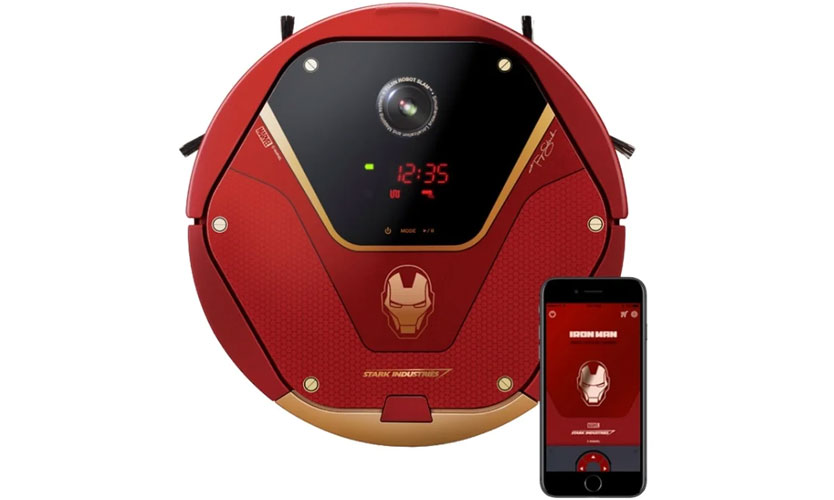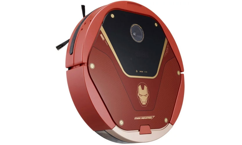 La palette de couleurs du boîtier est conçue dans des couleurs uniformes, le style correspond aux bandes dessinées du célèbre studio de cinéma Marvel. Le design est futuriste. Les dimensions de l'aspirateur sont petites. Sur le panneau avant, il y a un écran avec un panneau de commande, une caméra avec un logo Iron Man. Sur la face avant, il y a un pare-chocs souple et un insert en caoutchouc pour l'amorti, il abrite des capteurs pour reconnaître les objets intérieurs environnants et en déterminer la distance. Il y a un bac à déchets à l'arrière, il peut être retiré en appuyant sur un bouton. Les parois du conteneur sont transparentes, il est facile de surveiller son remplissage.