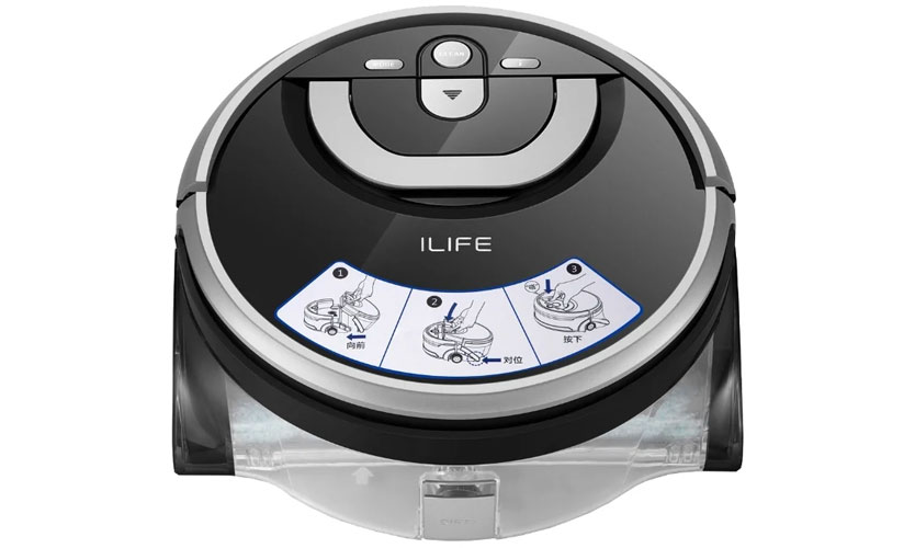 iLife W400 fonctionne avec une nouvelle technologie. Après la mise en marche, du liquide est pulvérisé devant l'appareil à partir d'un réservoir d'eau propre à l'aide d'une pompe interne à travers trois paires de trous. Ensuite, la brosse à rouleau s'allume et commence à nettoyer le sol. Derrière, il y a un grattoir qui ramasse l'eau sale restante vers l'entrée d'aspiration. Tous les déchets finissent dans le bac à eaux usées. L'aspirateur a les modes suivants: