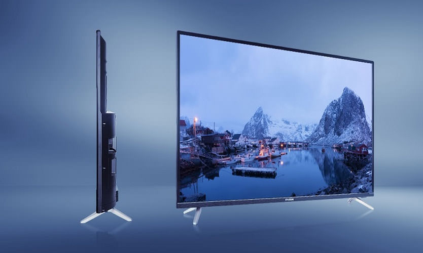 Fabriqué dans un style laconique sobre. Le matériau du corps est en plastique noir, la partie inférieure est légèrement perforée. Dimensions sans support - 1241 × 719 × 86 mm. Le support est représenté par deux pieds métalliques inclinés. Ils ne sont pas peints, ils sont en parfaite harmonie avec le logo argenté de la société sur le cadre inférieur du téléviseur. Il existe une possibilité de montage sur un support VESA 400 × 200 mm. Kivi 55UR50GR, d'un point de vue design, se distingue par un cadre gris et une exécution plus fine. Si vous pouvez discuter du cadre gris, l'épaisseur de 54 mm est un plus clair.