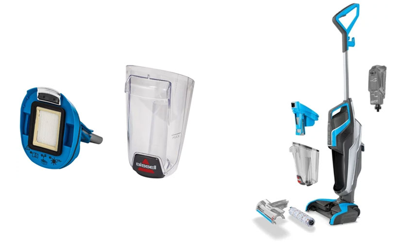 Aspirateur vertical Bissell 17132 (Crosswave) - positionné par le fabricant comme un gadget 3 en 1. Il aspirateur, lave, sèche les revêtements. Conçu pour le nettoyage sec et humide des stratifiés, parquets, carrelages, tapis en caoutchouc, sprays polymères, revêtements sensibles à l'humidité, surfaces molles et moquettes.