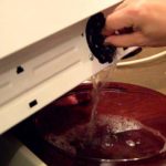 2. Après avoir retiré le linge, ramassez le liquide restant avec une louche ou une tasse.