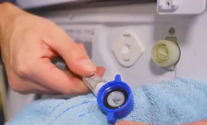 - dévissez l'extrémité du tuyau, qui est attachée à la machine elle-même;