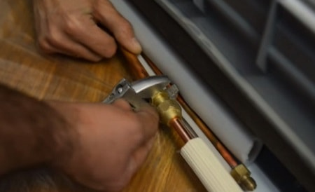 - Tuyau en cuivre, assurant le transport du fréon dans divers états entre les blocs. Pour assurer le bon transport du fréon, des tuyaux de 2 tailles sont utilisés.